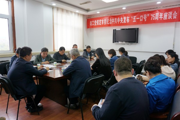 4月27日,農工黨保定市委在黨派機關會議室召開紀念中共中央發布“五一口號”75周年座談會。農工黨保定市委專職副主委趙濤主持會議并講話,副主委劉風昌、趙寶輝、金星參加會議。